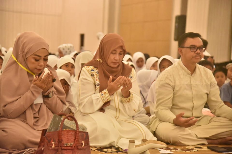 Dalam sambutannya, Wakil Bupati Tuti Andriani tampak emosional saat menyampaikan dukungannya kepada anak-anak yatim yang hadir.