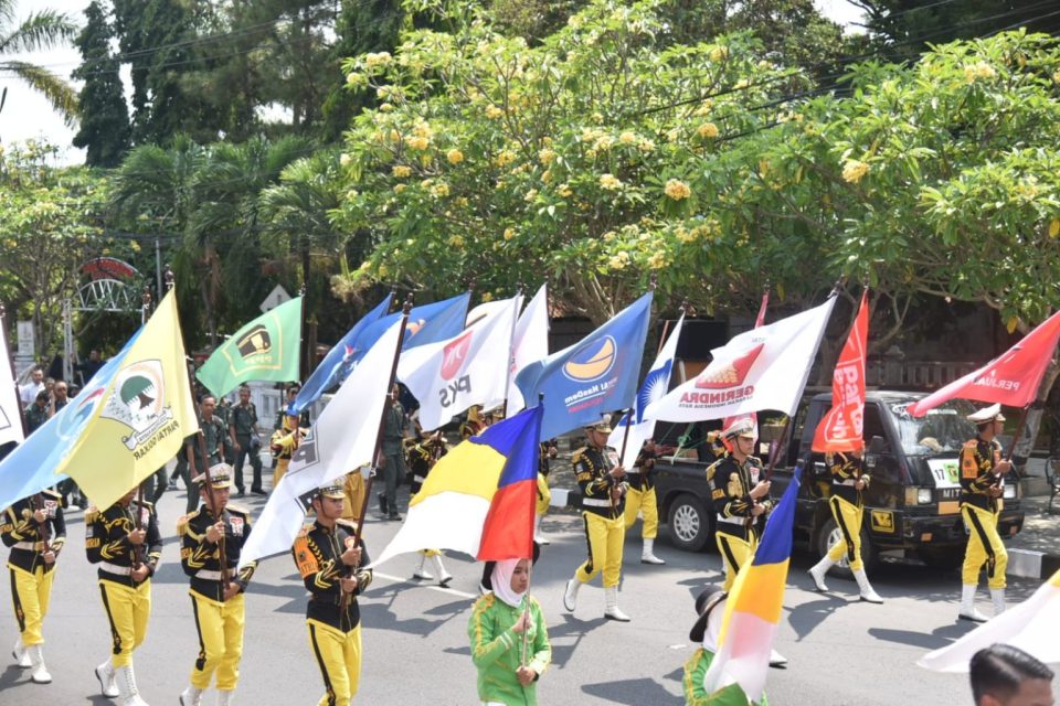 Kegiatan kirab tersebut melibatkan 18 partai politik peserta Pemilu 2024, termasuk di antaranya Gerindra, PDIP, Golkar, PKB, NasDem, PKS, Demokrat, hingga partai-partai baru seperti Gelora, Partai Ummat, dan Partai Garuda.