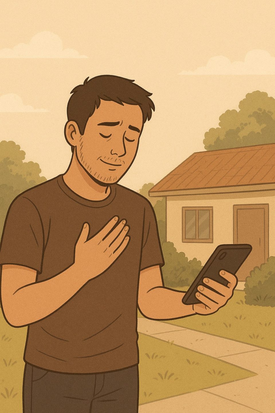 Laki-laki itu menatap layar ponselnya, lalu menarik napas panjang. Tangannya otomatis mengelus dada, seperti mencoba menenangkan degup yang tak tahu harus marah, kecewa, atau justru kasihan.