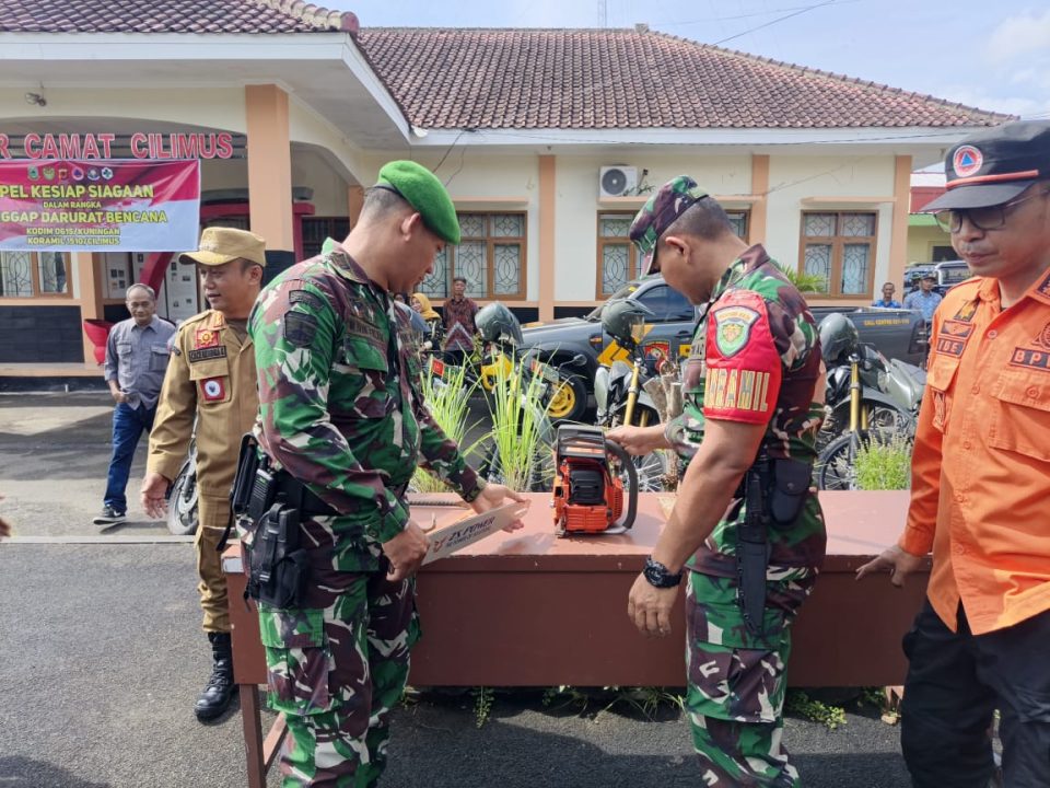 KUNINGAN – Koramil 0510/ Kecamatan Cilimus dan Cigandamekar menggelar apel kesiapsiagaan dalam rangka tanggap darurat bencana alam di dua wilayah kecamatan tersebut. Apel tersebut berlangsung di lapangan Kecamatan Cilimus, Kamis, (20/11/2025).