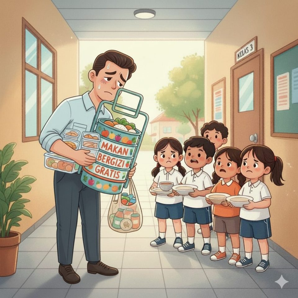 ‎Tidak sekedar beban fisik, program unggulan Presiden Prabowo itu menyeret sekolah atau guru untuk turut bertanggung jawab. Sekolah ikut sibuk mengurusi proses makan anak, merapikan serakan sisa makanan, dan mengganti ketika kotak atau ompreng nasi hilang atau rusak. Lebih lagi, pihak sekolah dibingungkan dengan sentimen masyarakat ketika terjadi keracunan, sementara pihaknya tidak tahu menahu tentang jenis makanan dan potensi racun di dalamnya.