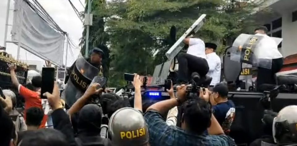 Namun, suasana berubah ketika massa mendesak Bupati Sudewo keluar menemui mereka. Ketegangan memuncak ketika botol air mineral, sandal, dan batu melayang. Sebuah kendaraan polisi dibakar. Aparat merespons dengan gas air mata dan water cannon.