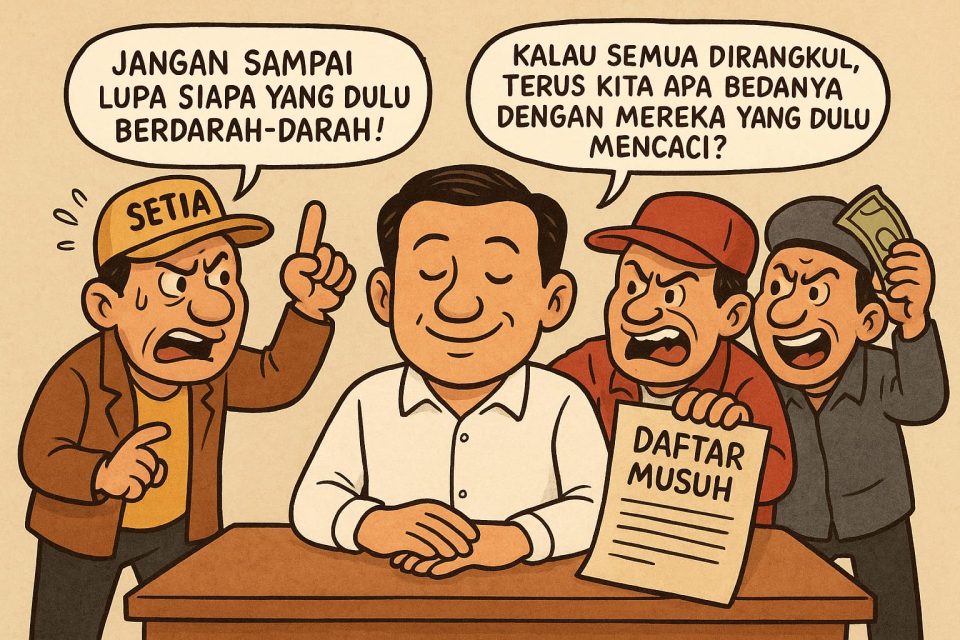 “Pak, jangan terlalu dekat dengan mereka yang dulu berseberangan,” bisik seorang.