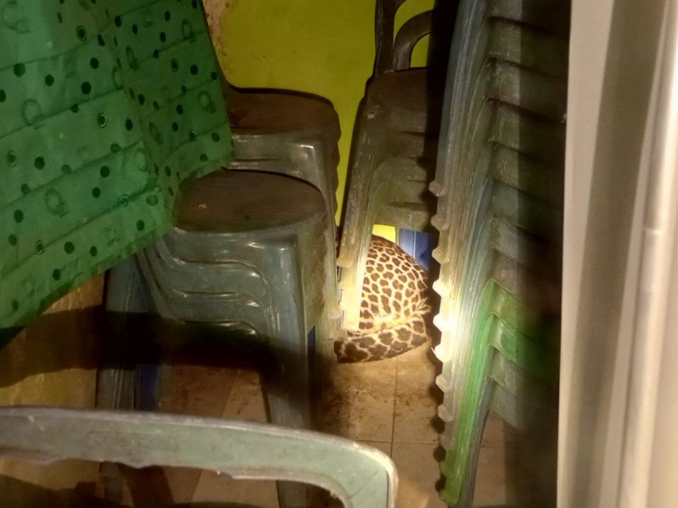 Awalnya, macan tutul tersebut masuk ke ruangan melalui atap kamar mandi yang bolong.
