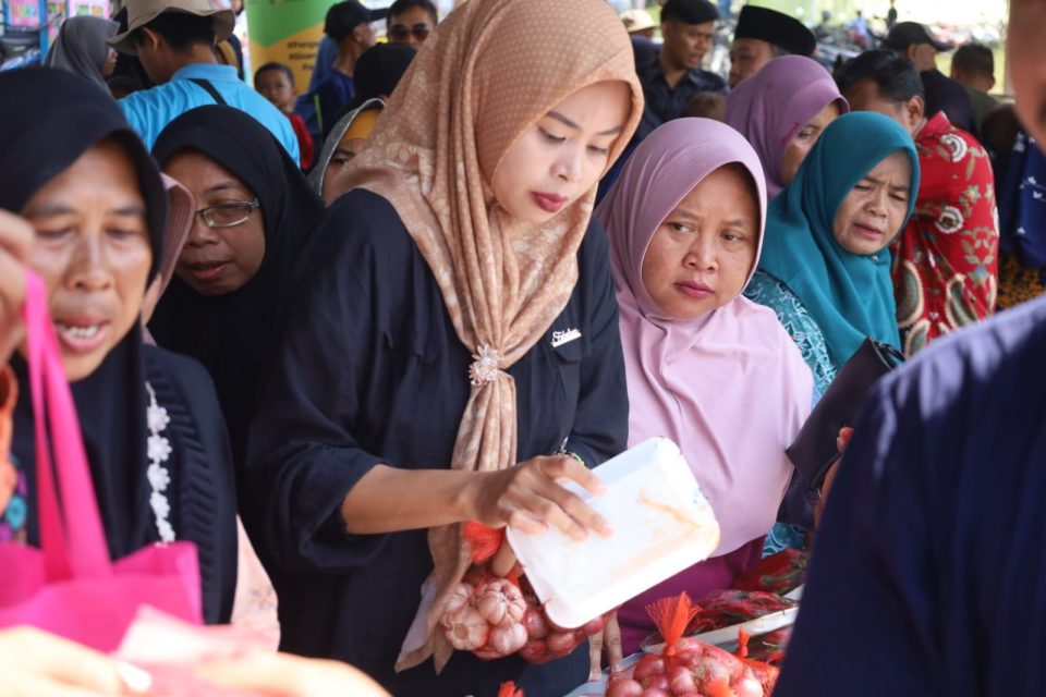 Bupati Kuningan, Dr. H. Dian Rachmat Yanuar, M.Si., hadir dan menyapa warga dengan gaya komunikatif yang menjadi ciri khasnya. Ia tampak berbincang dari satu lapak ke lapak lain, mendengarkan keluhan soal harga beras hingga kebutuhan harian. Sesekali terdengar tawa ringan ketika seorang warga yang berulang tahun diberinya bingkisan kecil.