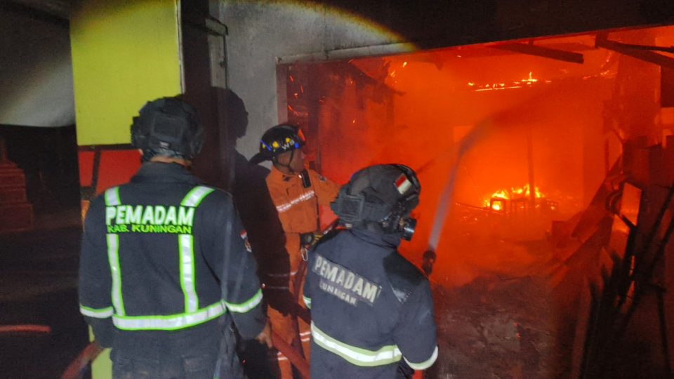 KUNINGAN – Kebakaran hebat terjadi di Toko Bangunan Sri Mekarsari, Lebakwangi, Senin, (1/12). Peristiwa yang terjadi sekitar Pukul 02.00 WIB itu menyebabkan kerugian besar sekitar 1,8 miliar.