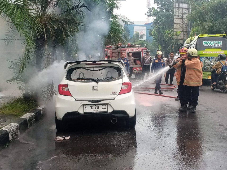 CIREBON — Sebuah mobil Honda Brio berwarna putih terbakar di Jalan Diponegoro, Kelurahan Kesenden, Kecamatan Kejaksan, Kota Cirebon, Rabu pagi (4/6/2026). Insiden yang terjadi di salah satu ruas jalan padat aktivitas itu sempat menarik perhatian warga dan pengguna jalan, namun respons cepat aparat kepolisian bersama petugas terkait berhasil mencegah dampak kebakaran meluas.