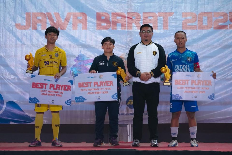 JATINANGOR – Proton FA U-17 Putri menutup turnamen Elit Pratama Jawa Barat 2025 dengan superioritas mutlak. Bukan hanya merebut gelar juara, tim muda asal Kuningan itu juga memborong tiga penghargaan individual yaitu Best Goalkeeper diraih Elvita Deviantri, sementara Best Player dan Top Scorer jatuh kepada Marsya Aulia Nurhalisa. Dominasi kolektif dan kualitas individu yang menonjol membuat Proton tampil sebagai poros baru futsal putri Jawa Barat.
