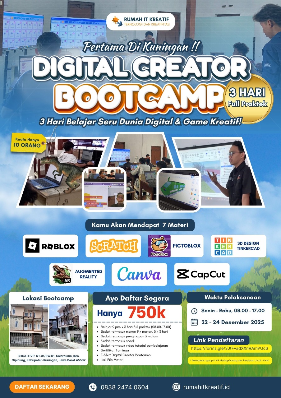 Kegiatan yang bertajuk Digital Creator Bootcamp itu akan diselenggarakan pada 22–24 Desember 2025 di wilayah Cipicung, Kabupaten Kuningan.