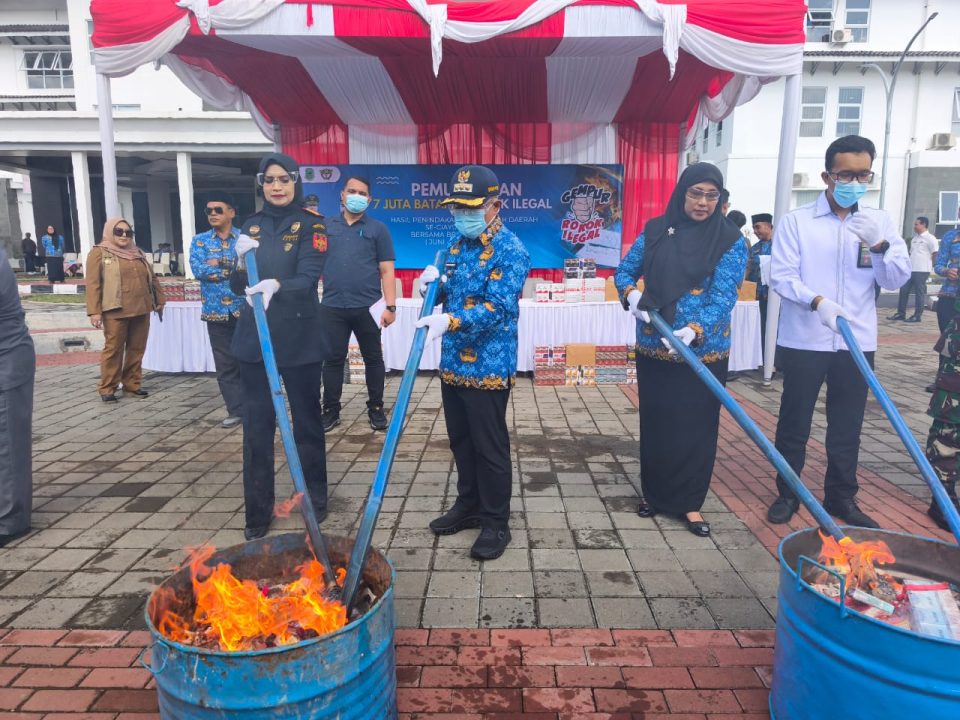 “Ya, hari ini kita menyampaikan pesan bahwa ini komitmen yang terus kita jaga. Peredaran rokok ilegal ini sangat merugikan kita semua, bukan hanya secara fiskal, tapi juga dari sisi kesehatan,” ujar Bupati Dian.