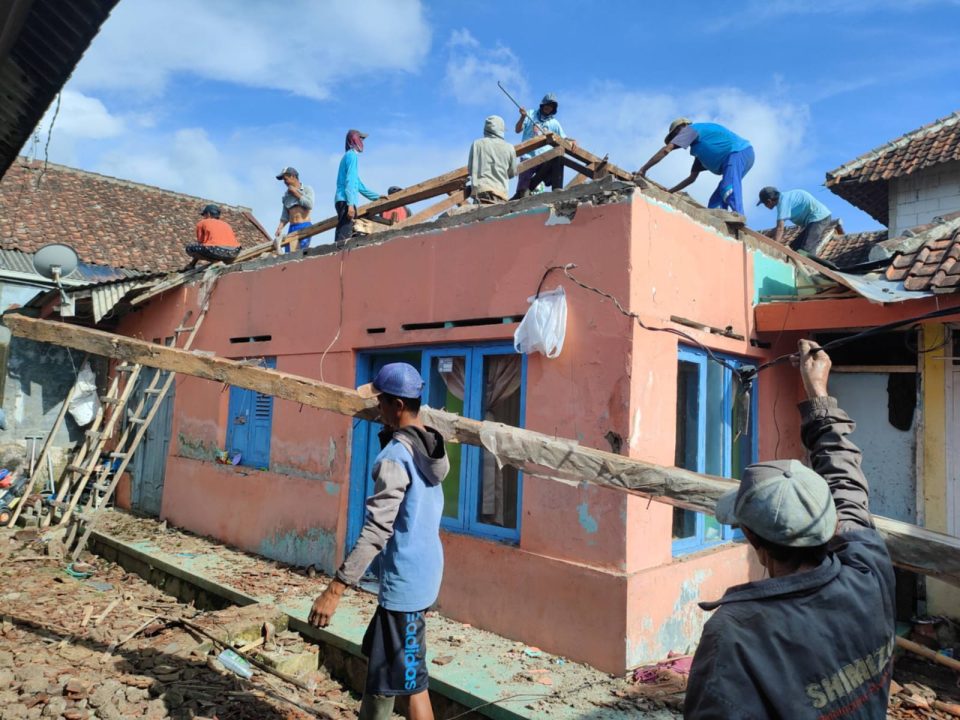 KUNINGAN – Rumah milik, Rusma, warga Kelurahan Cipari, Kecamatan Cigugur yang hampir roboh mulai diperbaiki melalui swadaya masyarakat. Perbaikan yang difokuskan pada bagian atap tersebut dimulai, Jum’at, (26/12/2025).