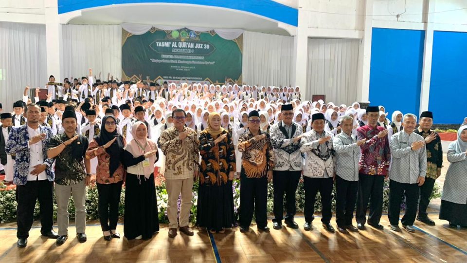 KUNINGAN — Lantunan ayat suci Al-Qur’an menggema di GOR Ewangga, Kamis (16/4/2026). Puluhan siswa secara bergiliran melafalkan hafalan Juz 30 di hadapan guru dan orang tua mereka. Kegiatan tasmi’ ini bukan sekadar seremoni, melainkan bagian dari proses evaluasi hafalan yang telah ditempuh para peserta didik dalam beberapa bulan terakhir.