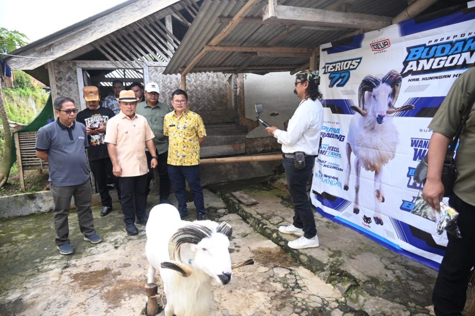 KUNINGAN – Di sela kunjungan kerjanya ke kelompok peternak Budak Angon, Desa Karangsari, Kecamatan Darma, Jumat pagi, (19/9/2025), Bupati Kuningan Dian Rachmat Yanuar memberikan dukungan penuh pada seekor domba istimewa bernama Terios 77. Domba Garut bertanduk besar dan khas itu akan berlaga di babak final Seni Ketangkasan Domba Garut Piala Presiden di Stadion Pakansari, Bogor, Sabtu besok.