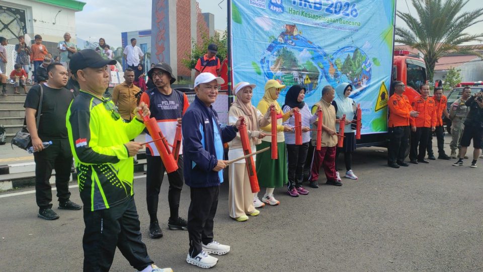 KUNINGAN — Suasana Car Free Day (CFD) di Jalan Siliwangi, tepatnya di depan Masjid Syiarul Islam, mendadak riuh oleh bunyi sirine dan tabuhan kentongan serentak, Minggu (26/4/2026) pagi. Aksi ini bukan tanda bahaya, melainkan simbol peringatan Hari Kesiapsiagaan Bencana Nasional (HKBN) 2026 tingkat Kabupaten Kuningan.