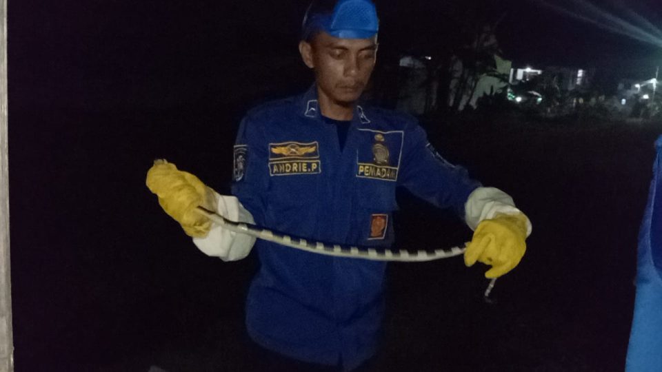 Tak berselang lama, tiga personel regu 1 piket Damkar meluncur ke lokasi. Tim tiba di rumah pelapor pada pukul 22.57 WIB dan segera melakukan pencarian. Dalam waktu sekitar 15 menit, ular berjenis Weling dengan panjang kurang lebih 80 cm berhasil diamankan.